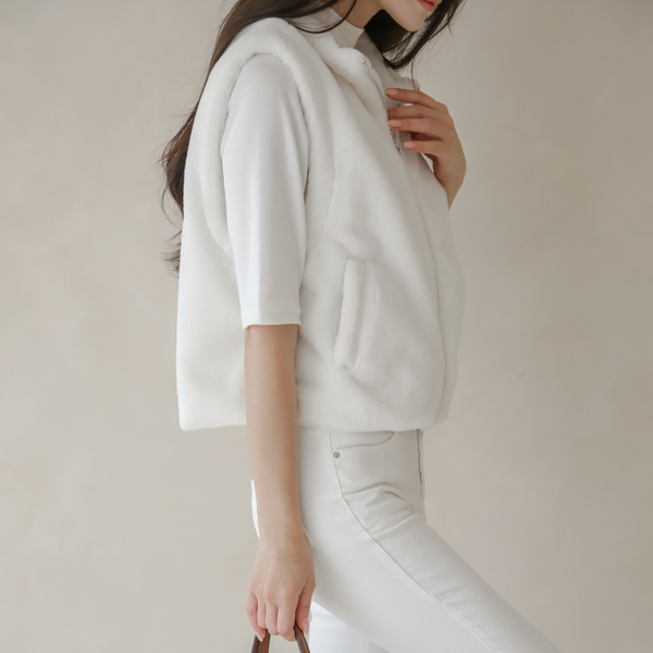 High-Neck Fake Mink Fur Short Vest