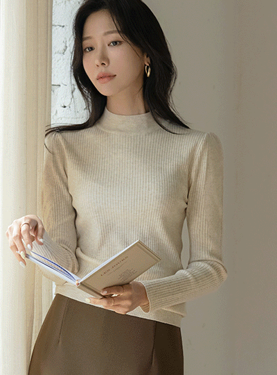 Shirring Line Half-Highneck Velvet Blouse T-shirt