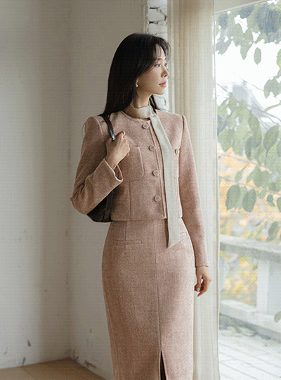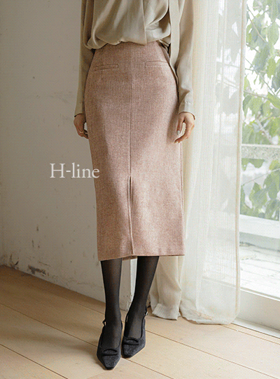Elysee Cozy Tweed Set-up Slit H-line Skirt