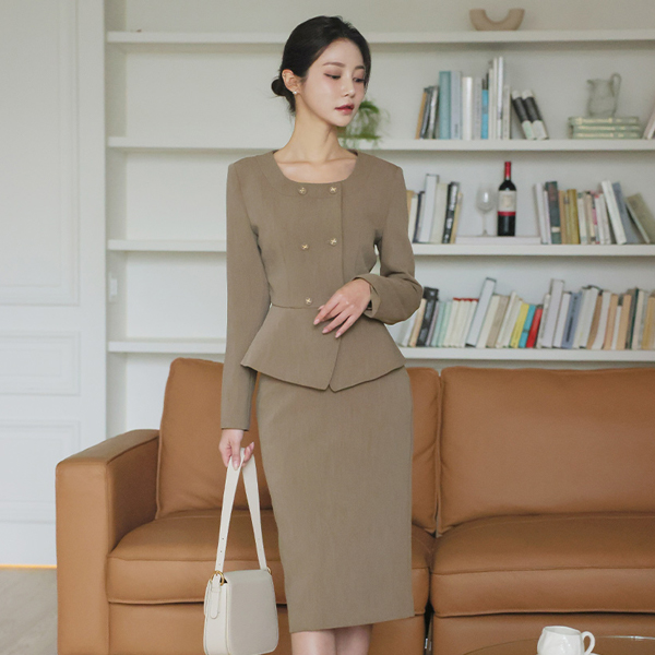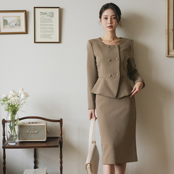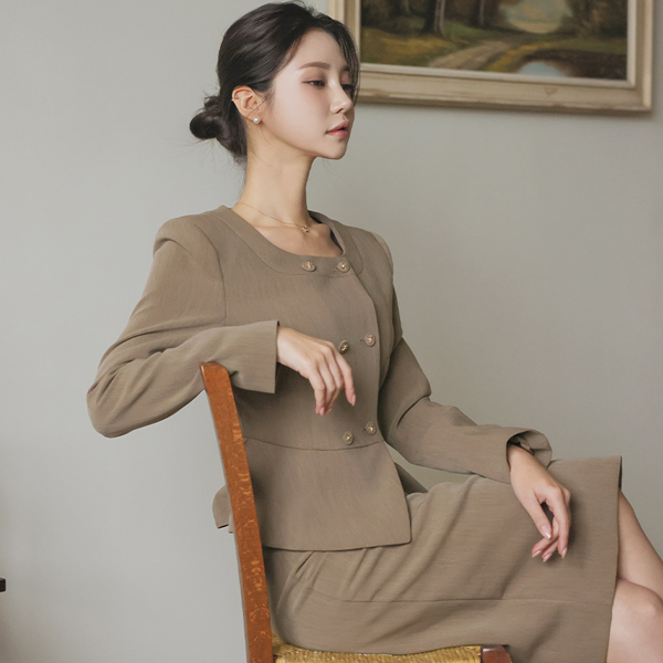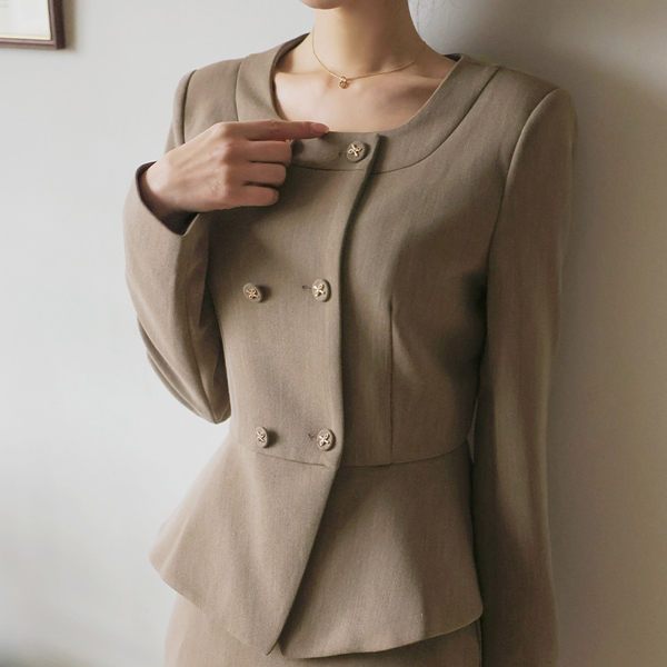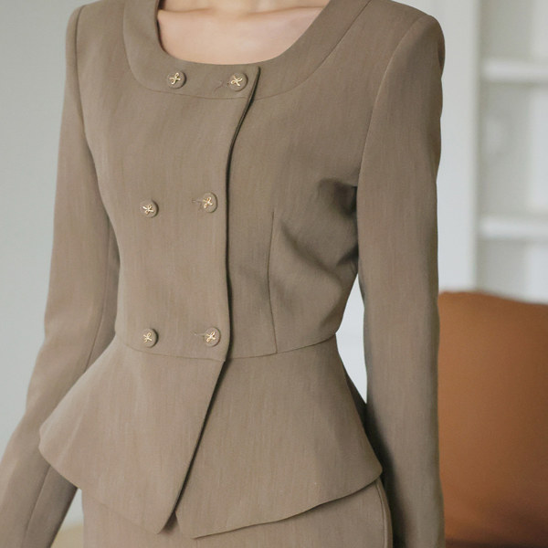 ODE Square Raund neck Double-button Peplum Jacket