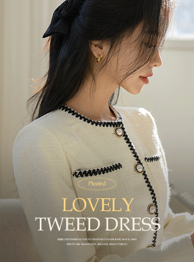 Lovely Hems Pleats Line Color Combination Tweed Dress