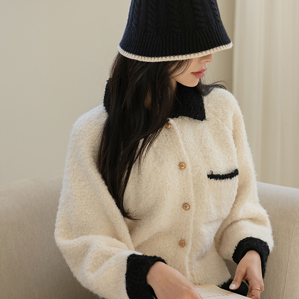 Lovely Polo Thick Bouclé Wool Knit Cardigan