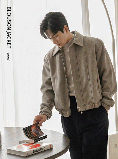 [HOMME] Thick Single Collar Cutting Blouson Jacket (quilted lining)