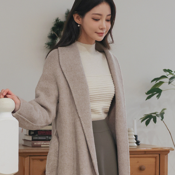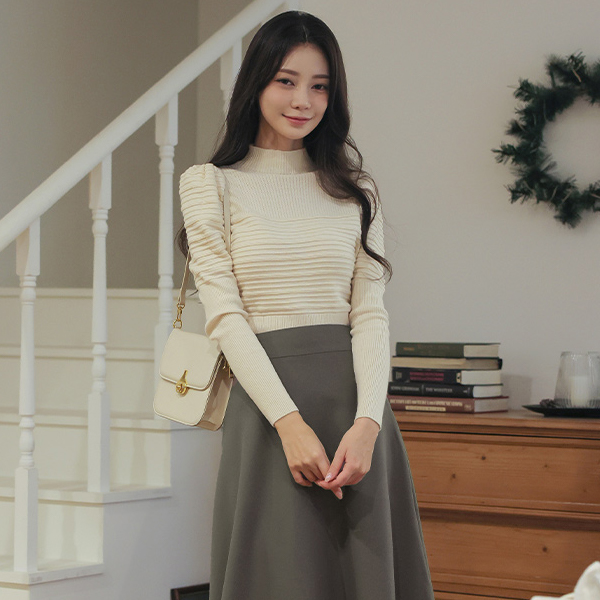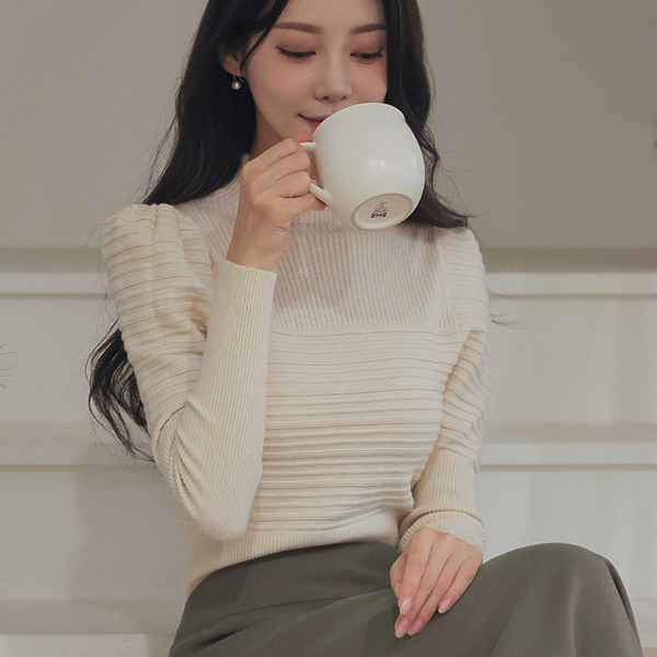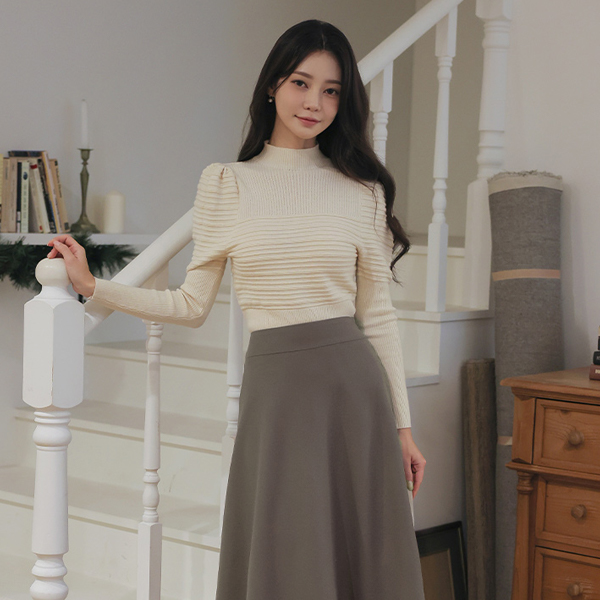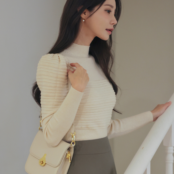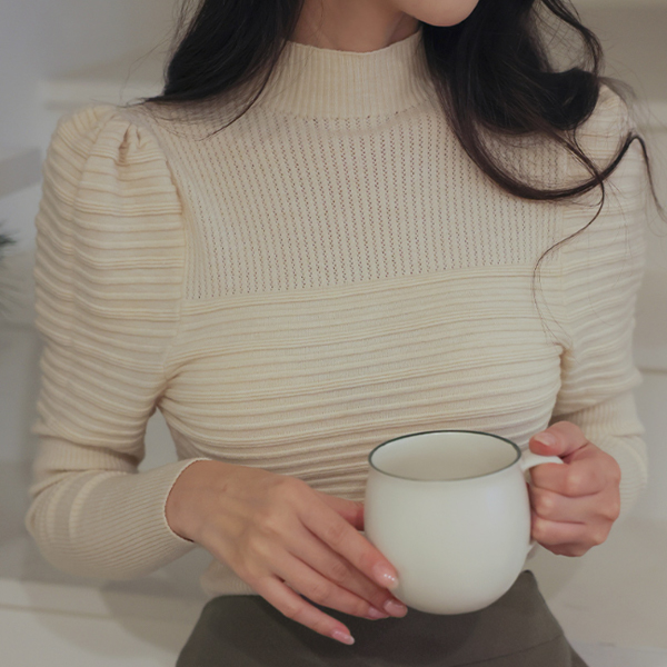 Romantic Half-Neck Puff Sleeves Corduroy Knit