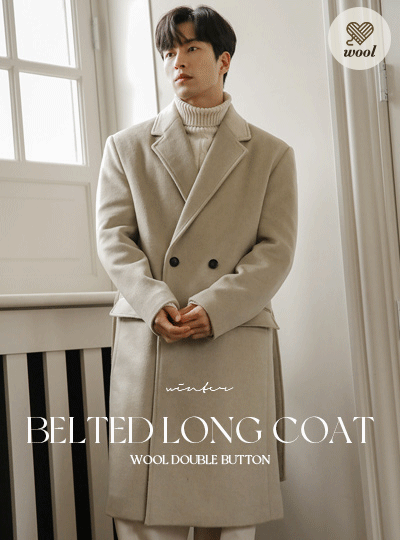 [HOMME] Wool Double Button Belted Long Coat