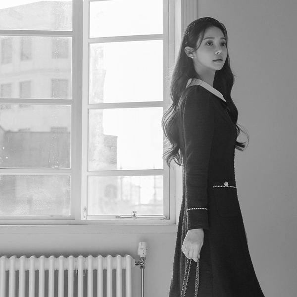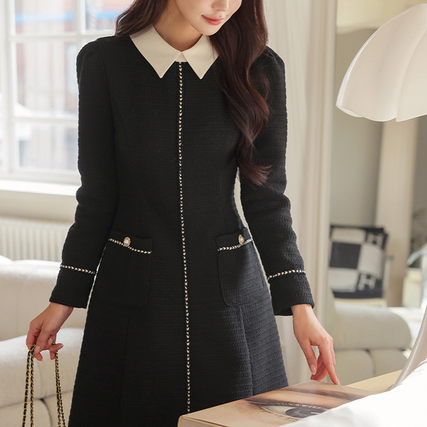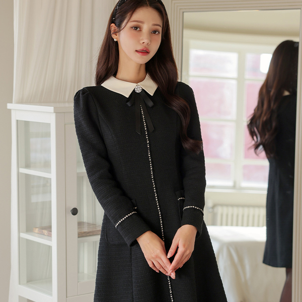 Romantic Color Combination Collar Jewel Ribbon Brooch A-line Dress