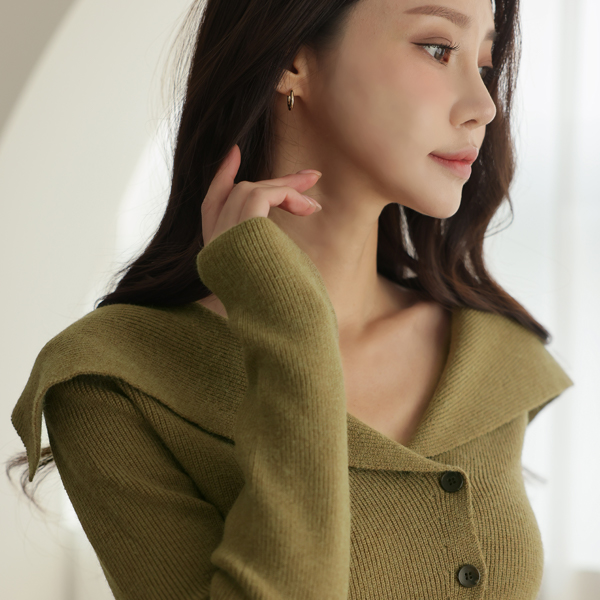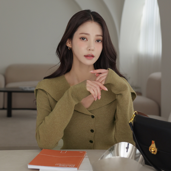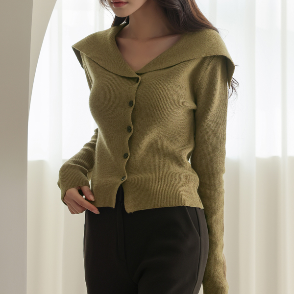 Wide Wing Collar Wool Corduroy Cardigan