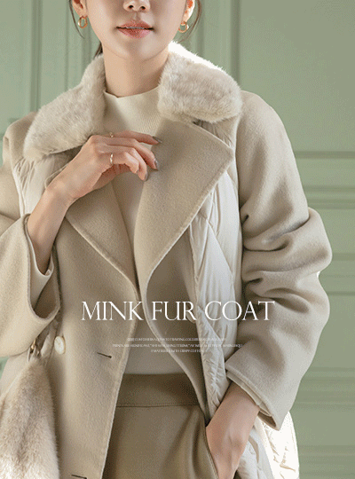 Mink Fur Collar Goose Color Combination Padding Wool Belted Long Coat
