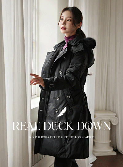 Real Duck Down Fox fur Double Button Belted Long Padding