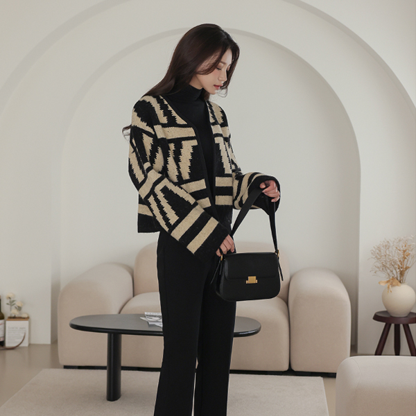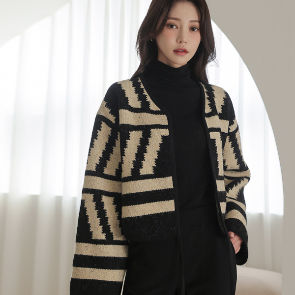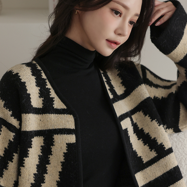 Geometry Jacquard Color Combination Knit Open Cardigan