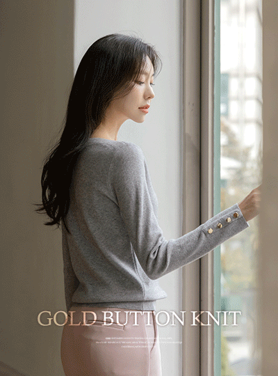 Boat Neck Sleeves Gold Button Knit