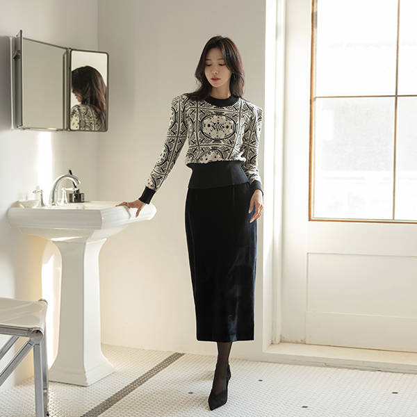 ODE Velvet Modern Line Skirt