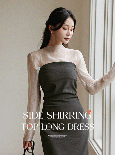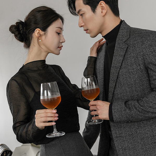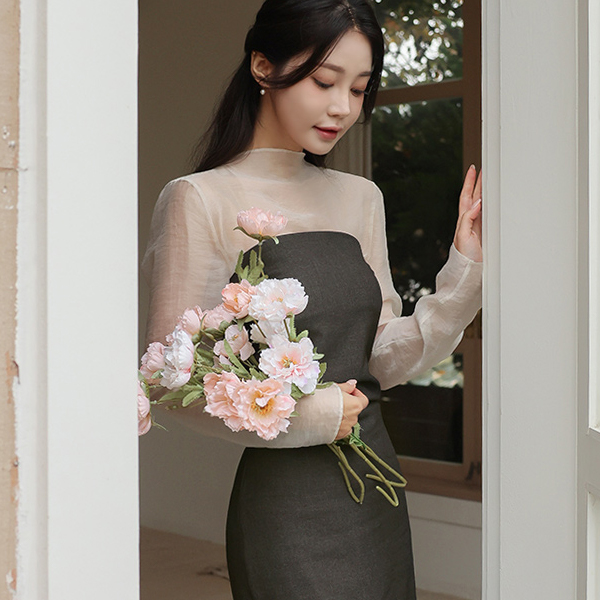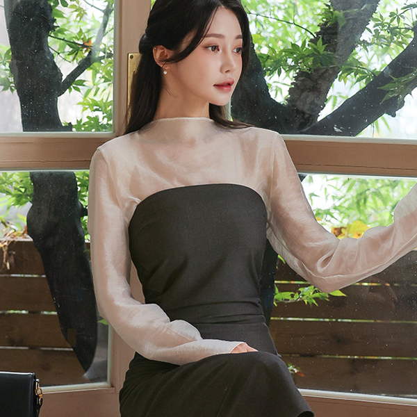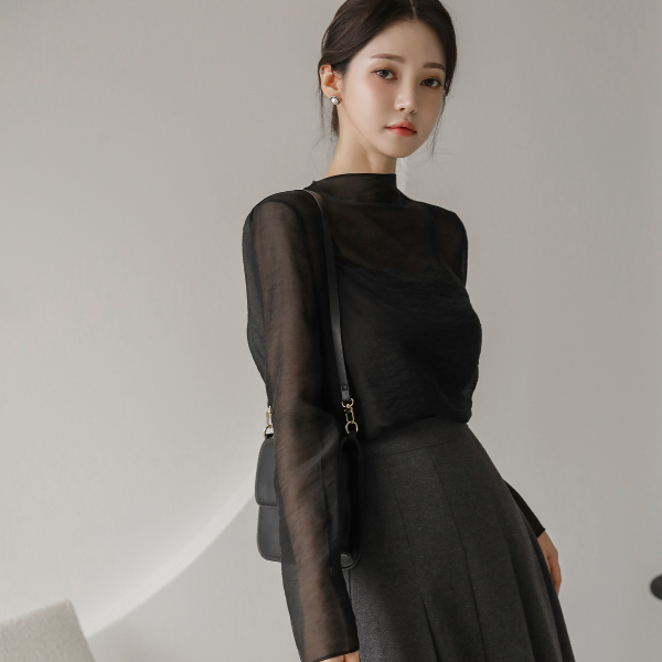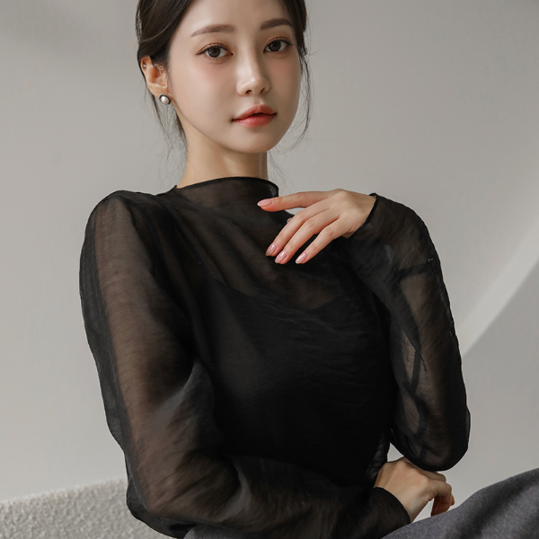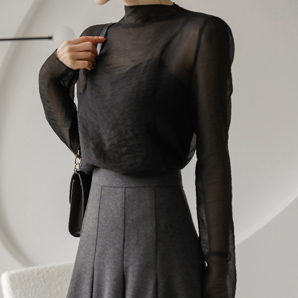 slim-looking Half-Neck See-through Tencel Blouse
