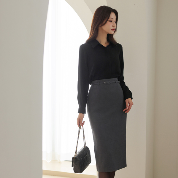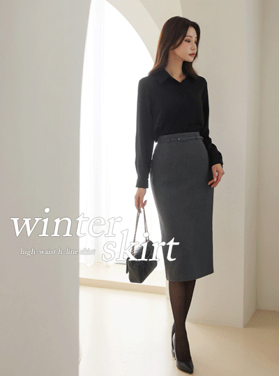 Winter Belted High-Waist H-line Skirt (napping lining)