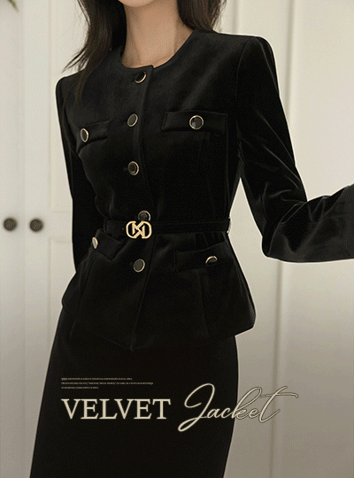 Gold Button Velvet Slim Fit Jacket (BeltSET)