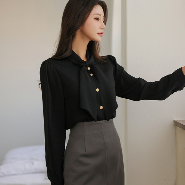 Royal Cross Tie Gold Button Blouse