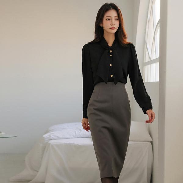 High-Waist Cutting Detail H-line Skirt (napping lining)