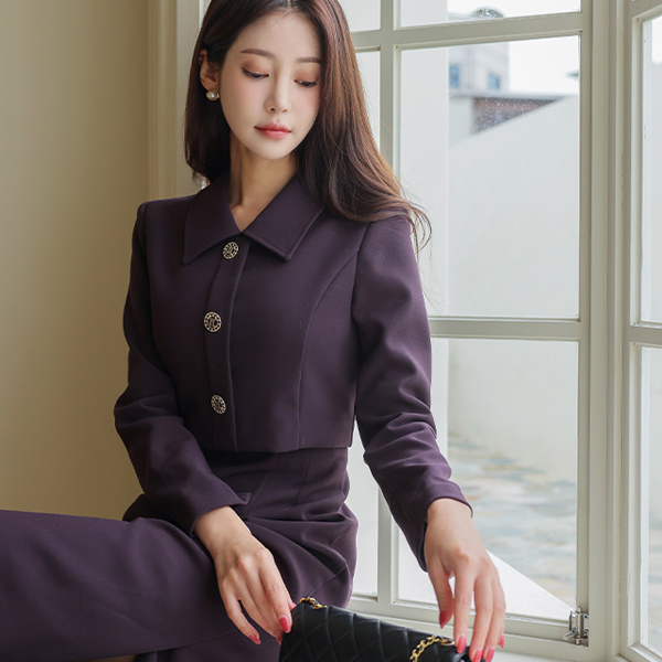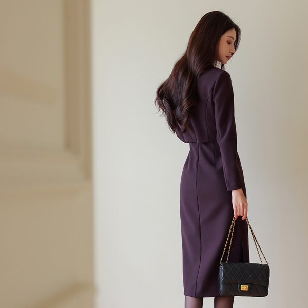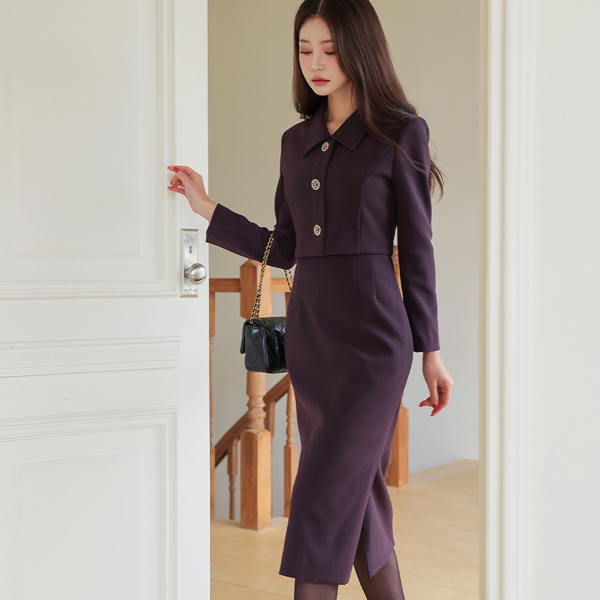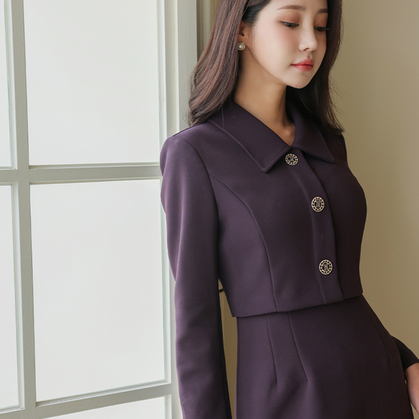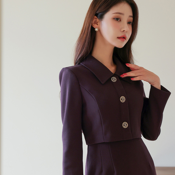 Single Collar Jacket layered H-line Dress