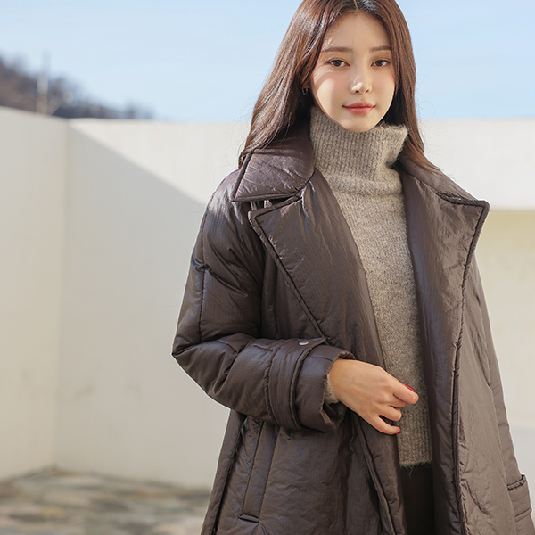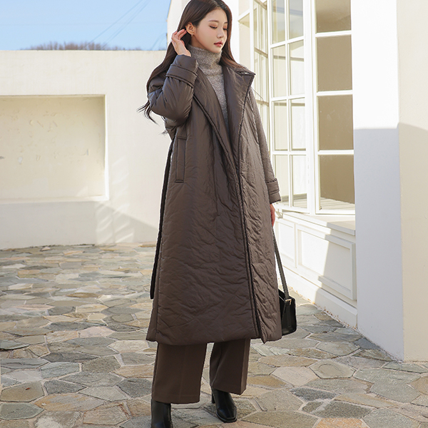 Chic Glossy Belted Long Padding Coat (4Ounce)
