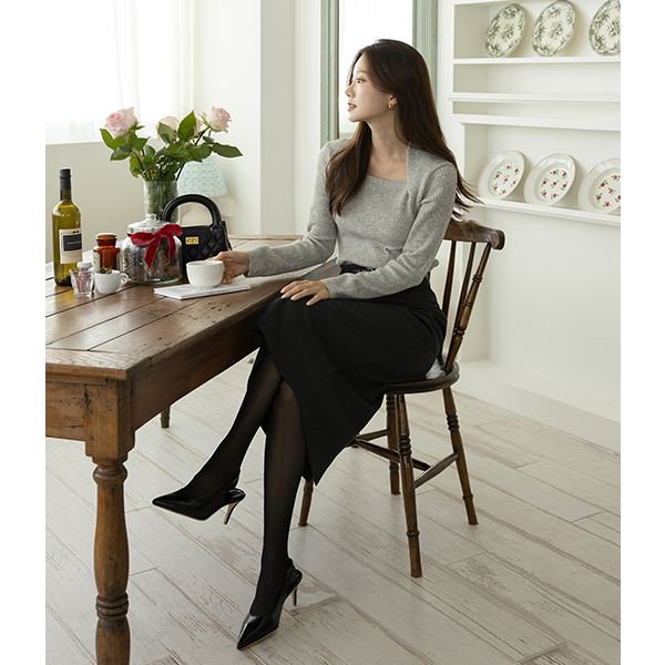 Square Neck Bolero Line Corduroy Knit