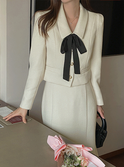 메이빈 Tweed Scarf (Set) Set-up Crop Jacket
