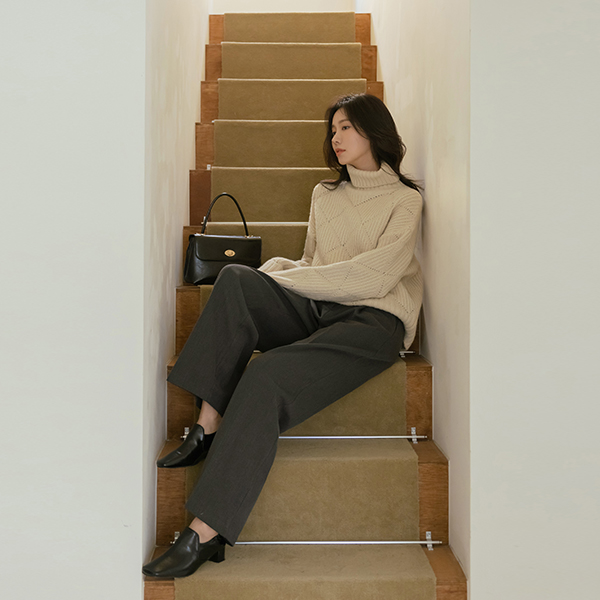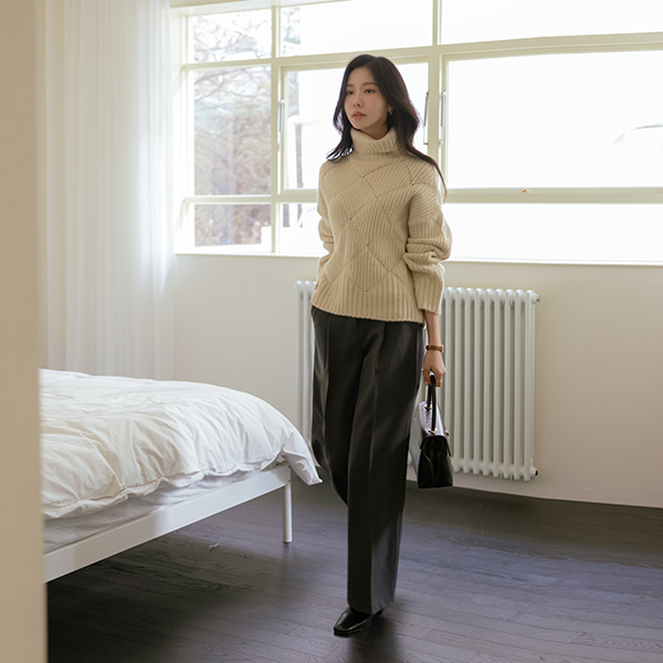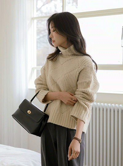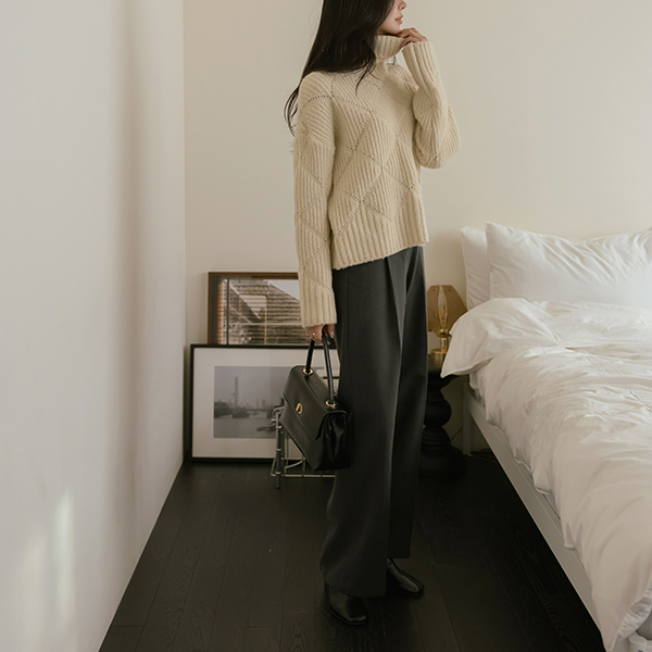 Diamond Woven loose fit Wool Turtleneck Knit