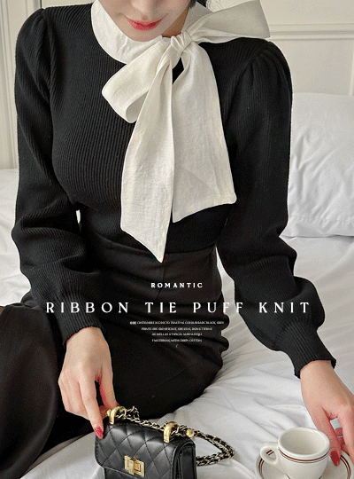 Romantic Color Combination Ribbon Tie Puff Knit