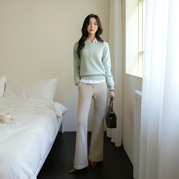핏보장 Long-legged Mink Lining Span Boot-Cut Slacks