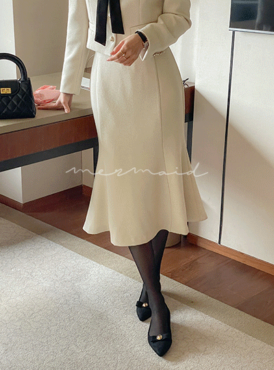 메이빈 Tweed Mermaid Line Set-up Skirt