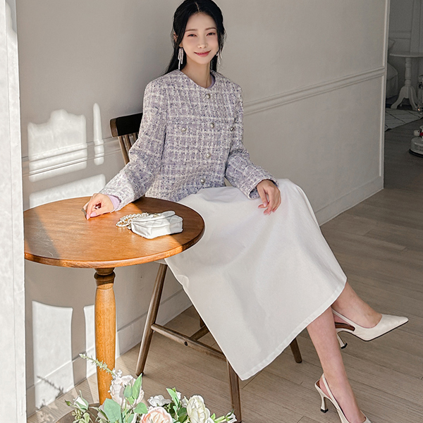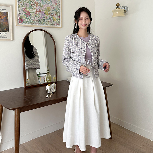 Check Tweed Raund neck Silver Button Jacket