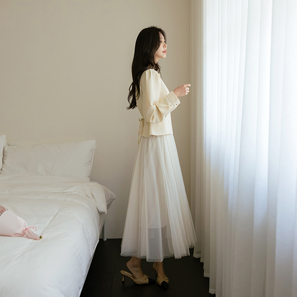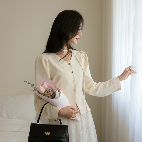 Loel Peplum Line Back Ribbon Blouse