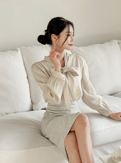 V-neck Ribbon Tie Bean Button Blouse