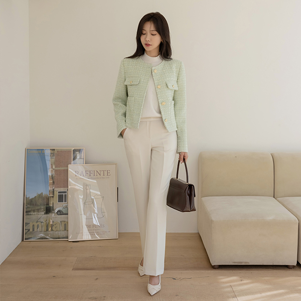 Deep Square Neck Jewel Button Tweed Jacket