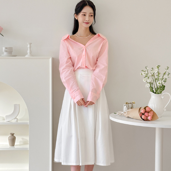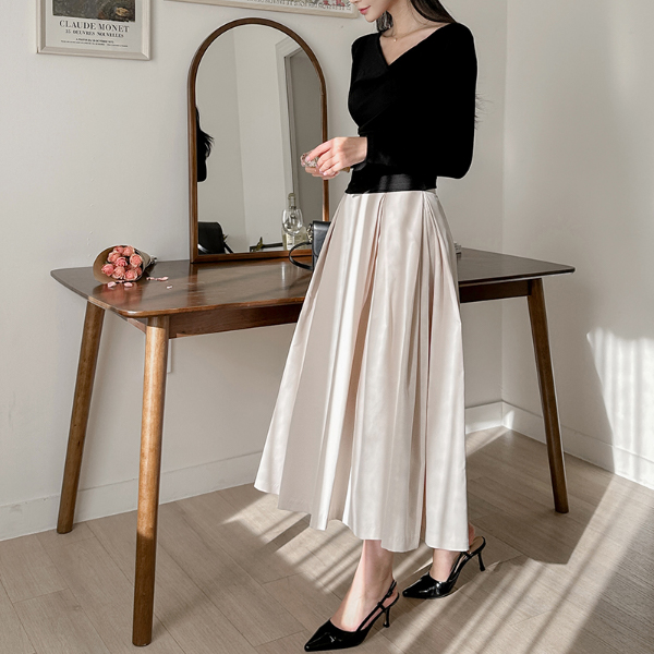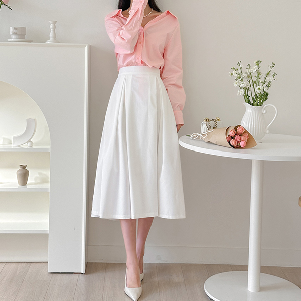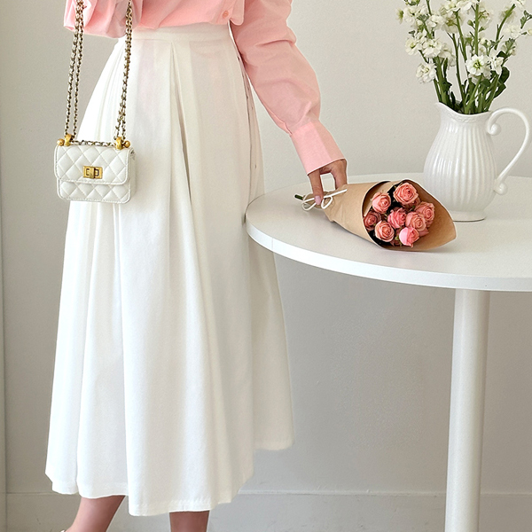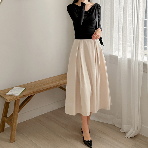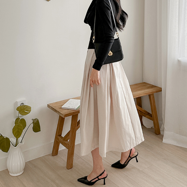 디어 Pintuck Double Wrinkles Flared Skirt