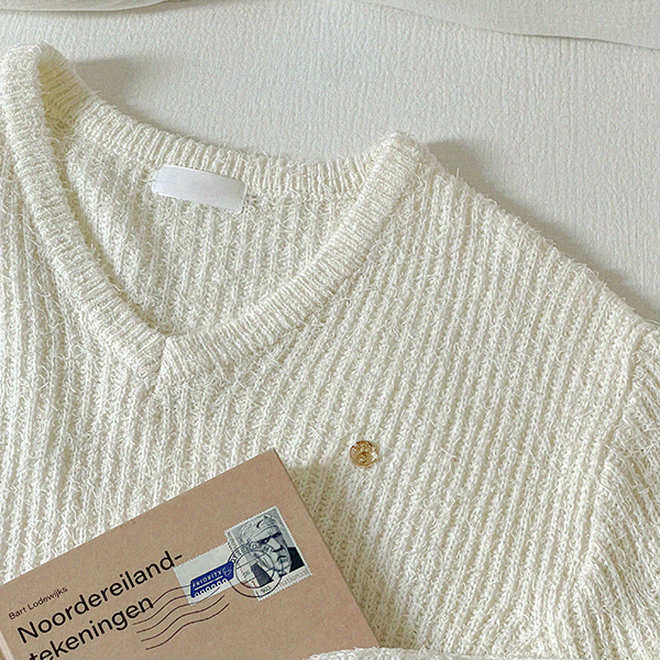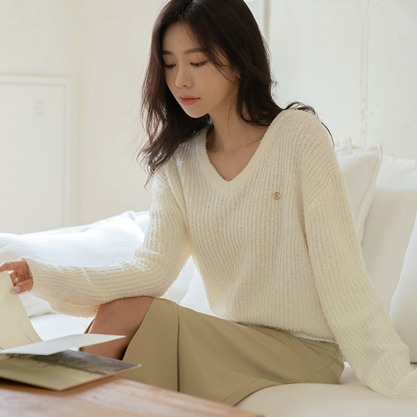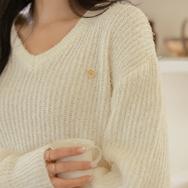 Gold 심볼 V-neck Fringe Knit