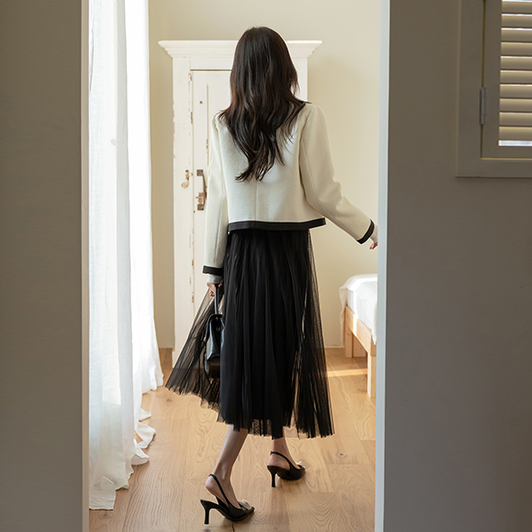 ODE Cobination Line Color Combination Tweed Jacket