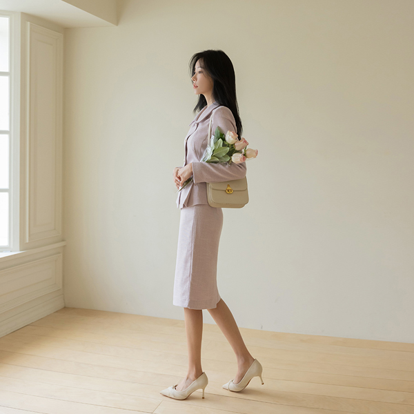 Spring Color Peplum Line Tweed Set-up Jacket