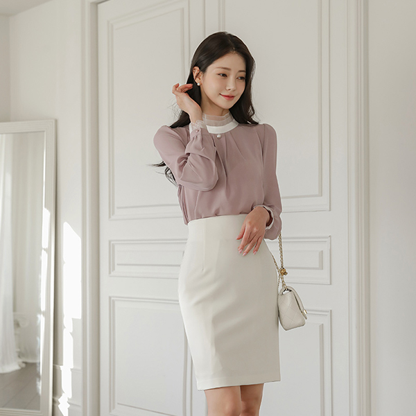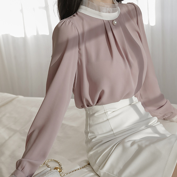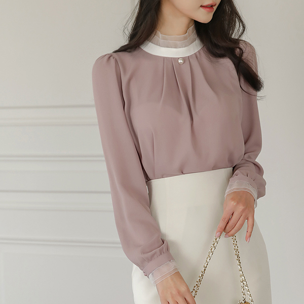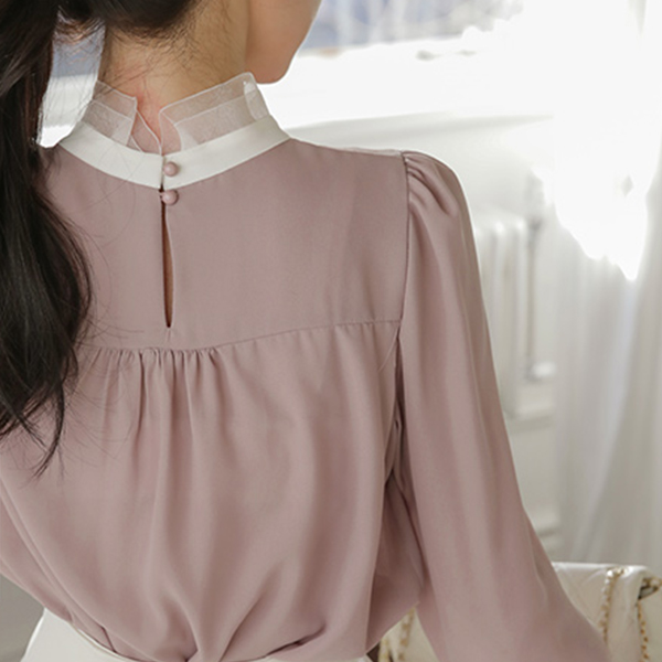 Organza Trimming Pearl Shirring Blouse Ⅱ