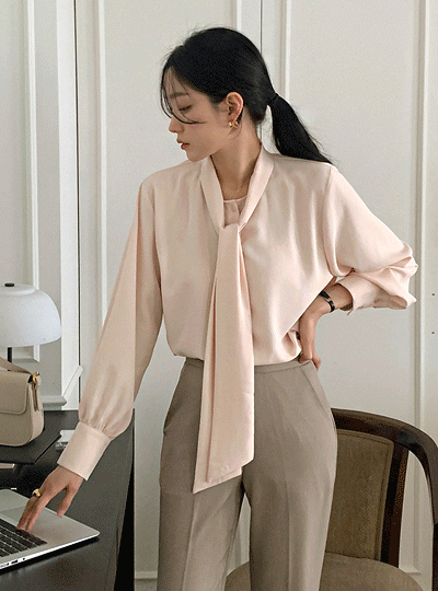 Raund neck Long Tie Blouse