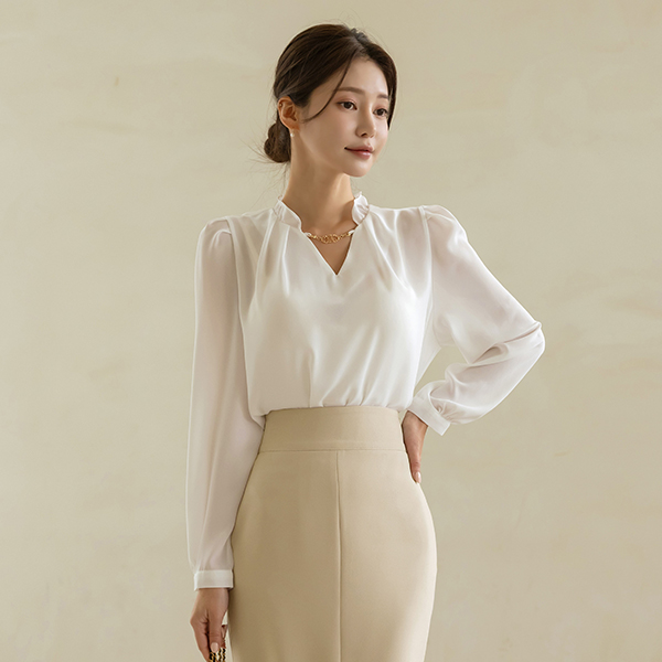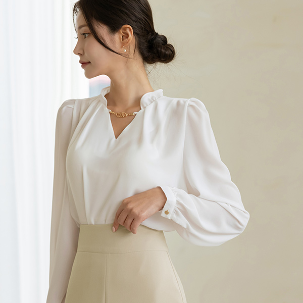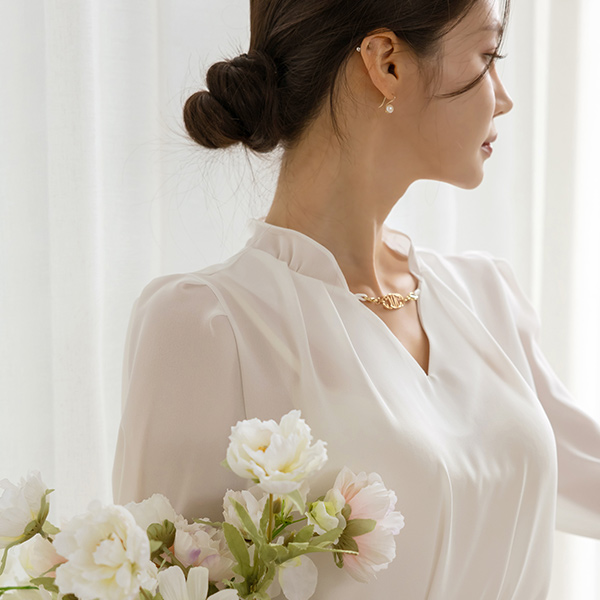 Gold Necklace Shirring Neck Blouse