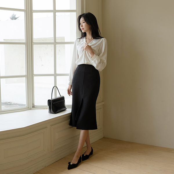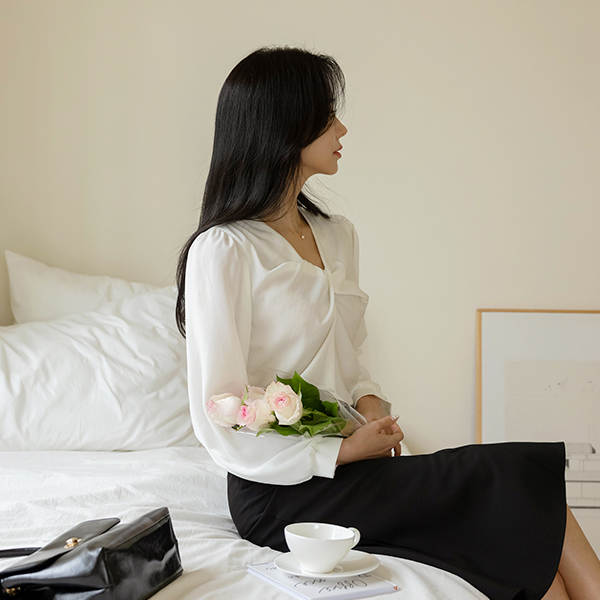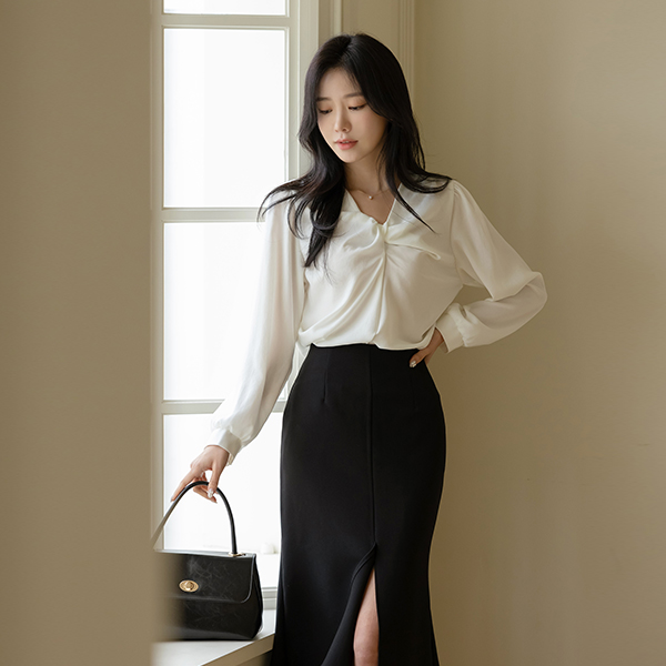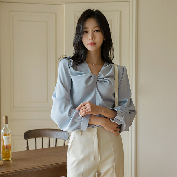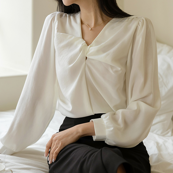Glam Shirring Knot Point Glossy Blouse