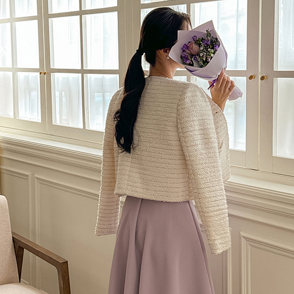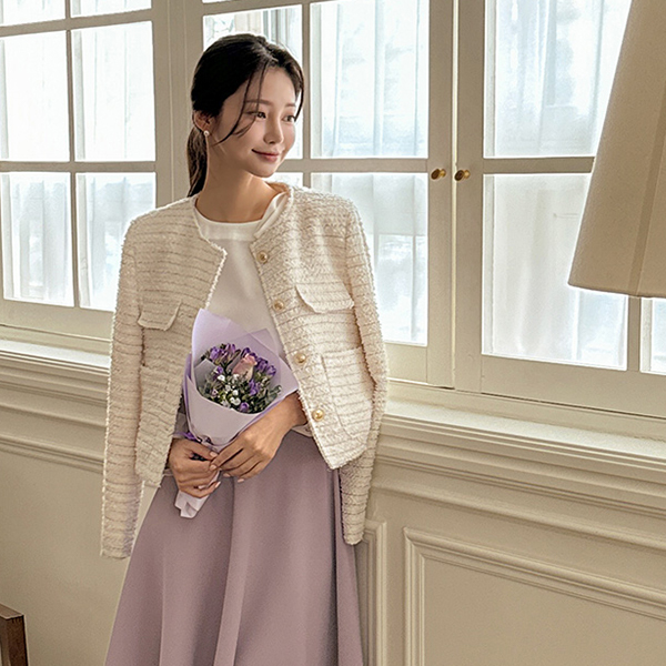 Spring Color Raund neck Bouclé Tweed Jacket