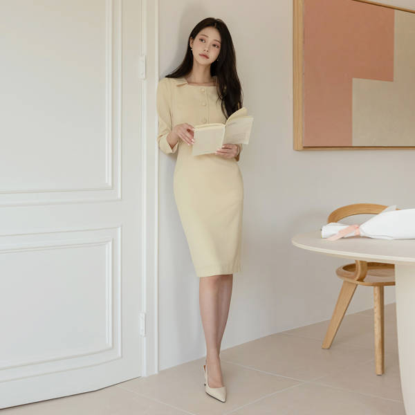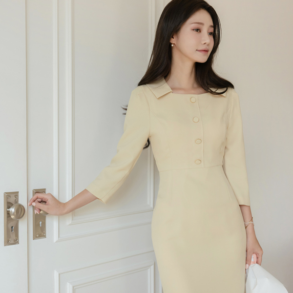 Square Polo Button Point Slim Dress