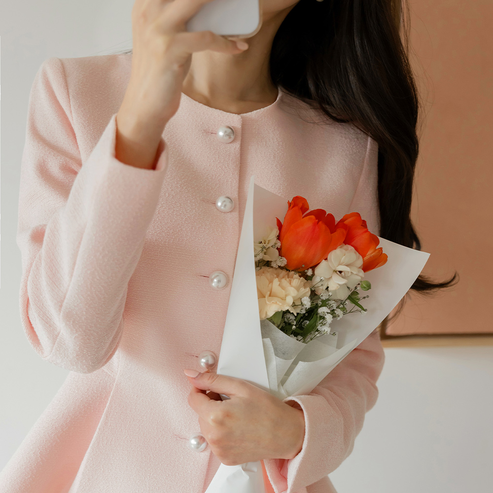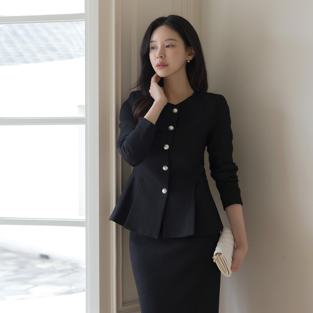 이프 Pearl Button Peplum Jacket