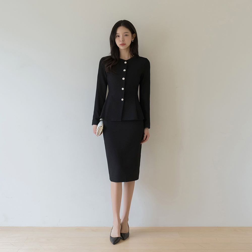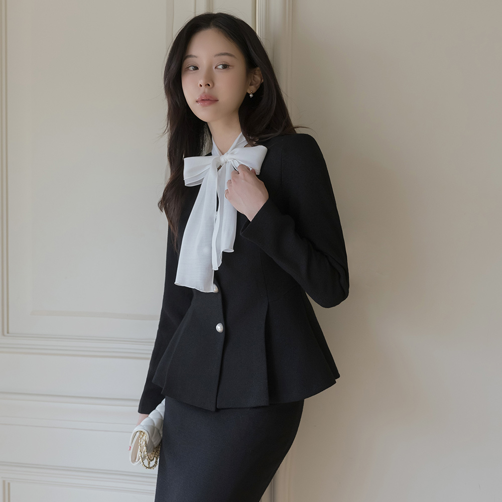 이프 Pearl Button Peplum Jacket