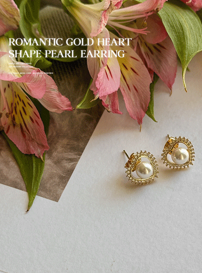 Romantic Gold heart Shape Pearl Earring