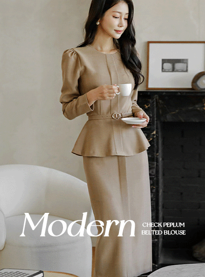 Modern Check Peplum Belted Blouse