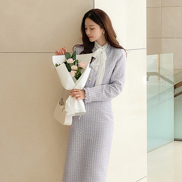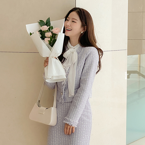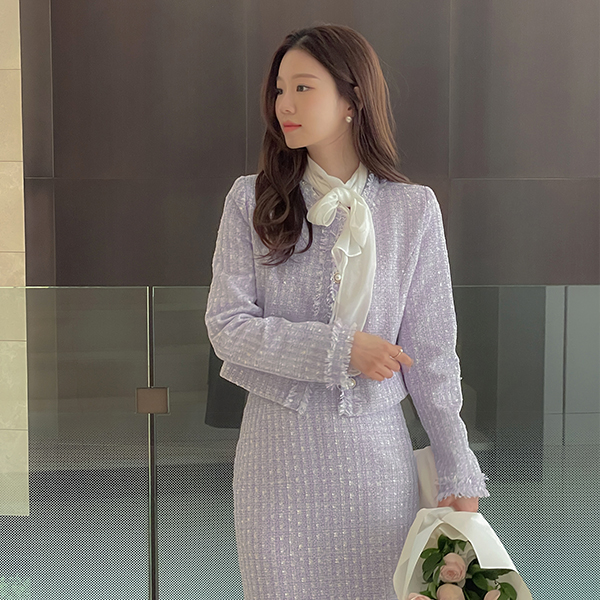 프린 Pearl Button Classic Wool Tweed Set-up Jacket