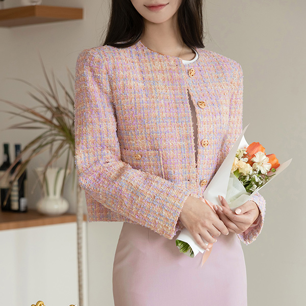 Romantic Spring Color mix Tweed Jacket