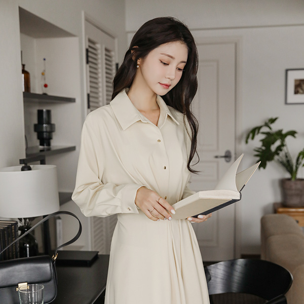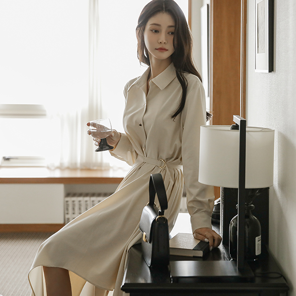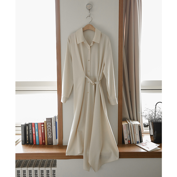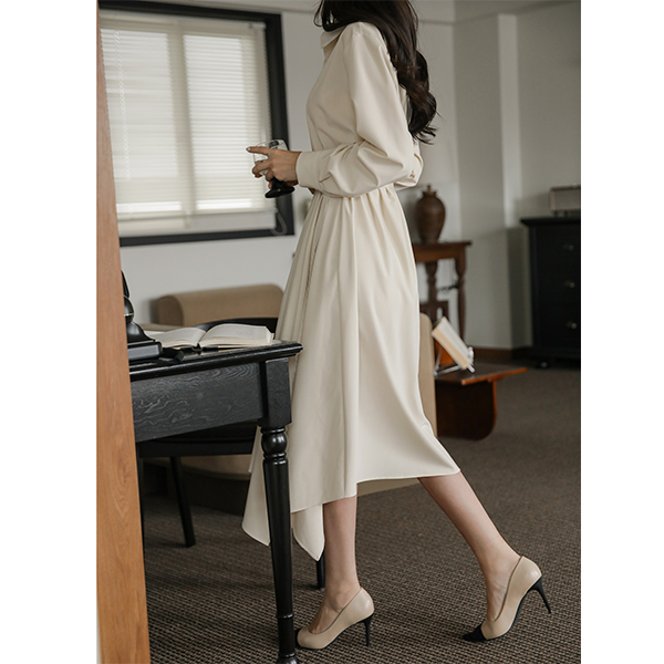 Shirt Collar Side Buckle Point Unbalance Long Dress